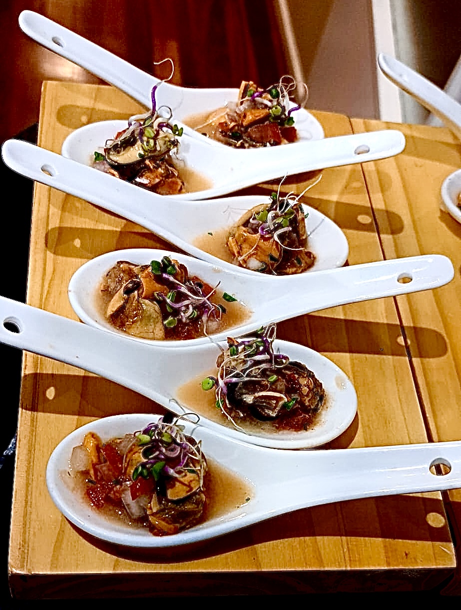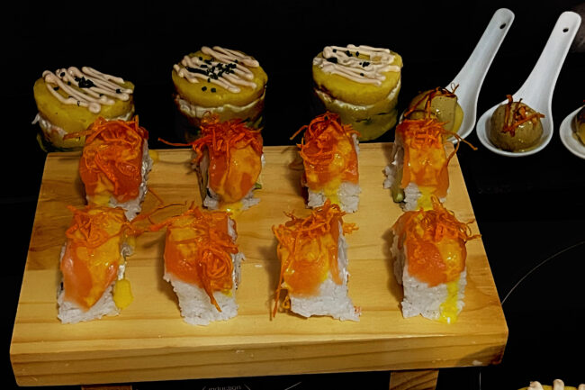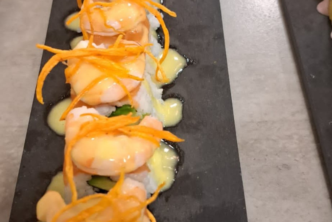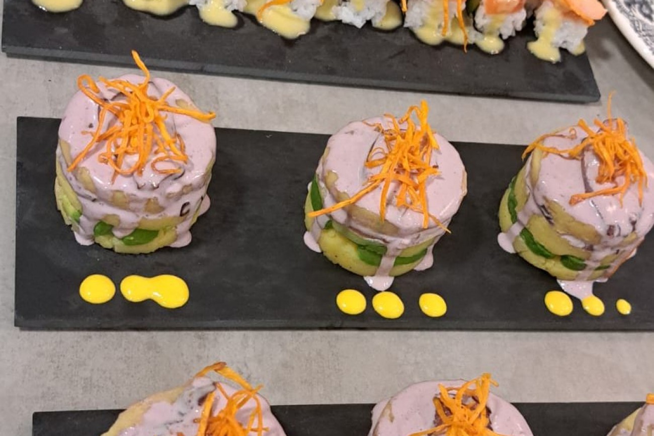 Uramakis de langostino + Causa Limeña con salsa al olivo + Ceviche mixto + Ají de gallina con arroz ……….. 37€ por persona.