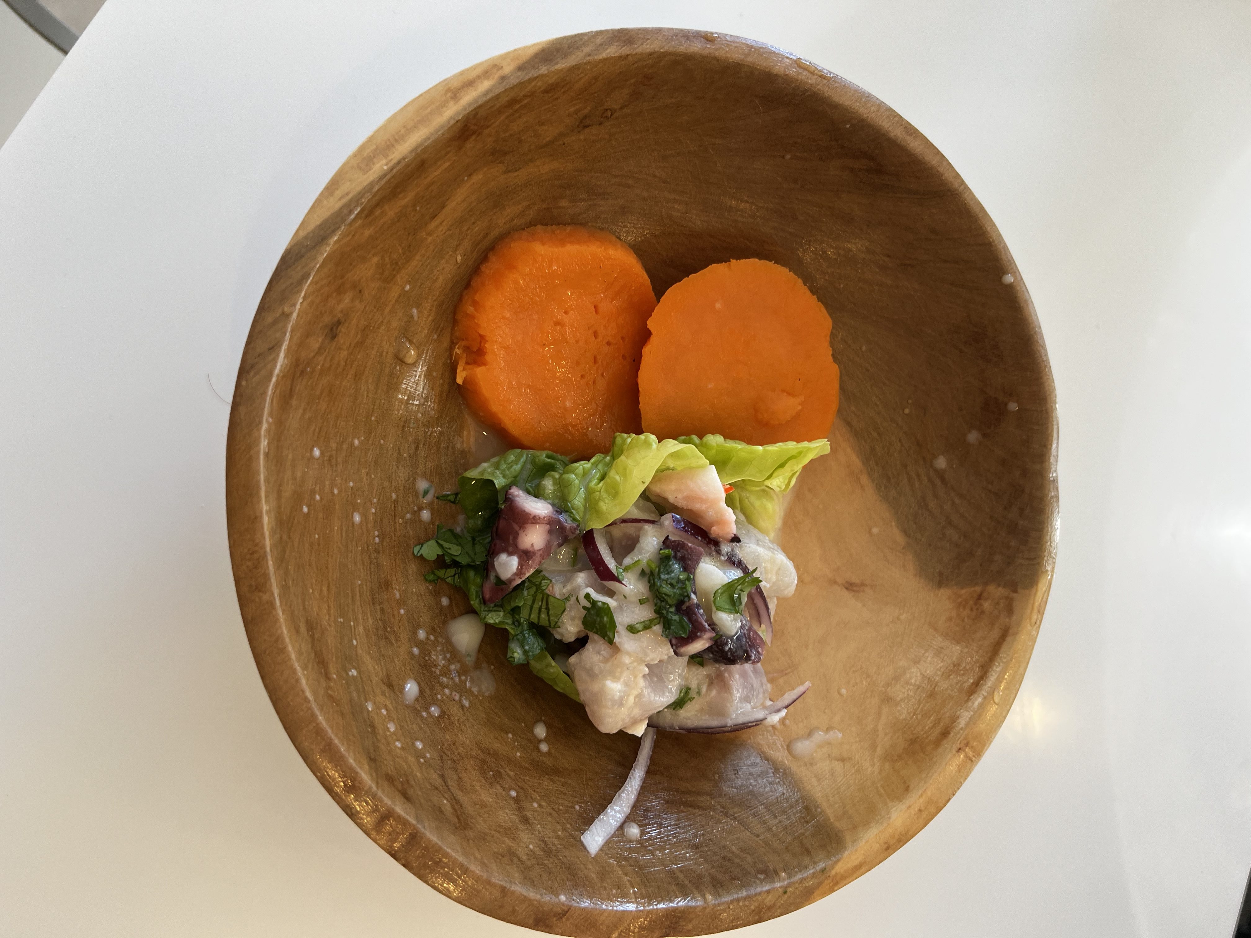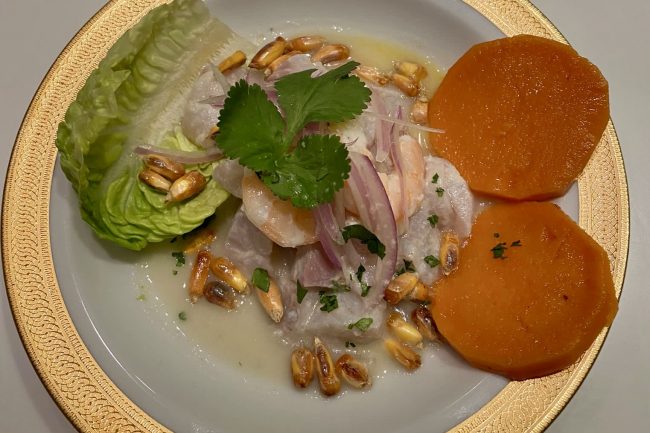 Ceviche mixto + Ají de gallina con arroz ……….. 27€ por persona.
